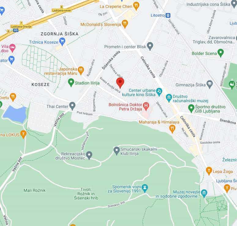 Študentske sobe se nahajajo v hiši na mirni lokaciji v Šiški. Lokacija primerna za vse fakultete. Bližina trgovine ( 100 m ), šišenskega hriba ( 500 m ), lokalne tržnice ( 5 min ) in večjega shopping centra ( 7 min ). Do samega centra mesta smo oddaljeni manj kot 15 minut z avtobusnim prevozom ali kolesom.