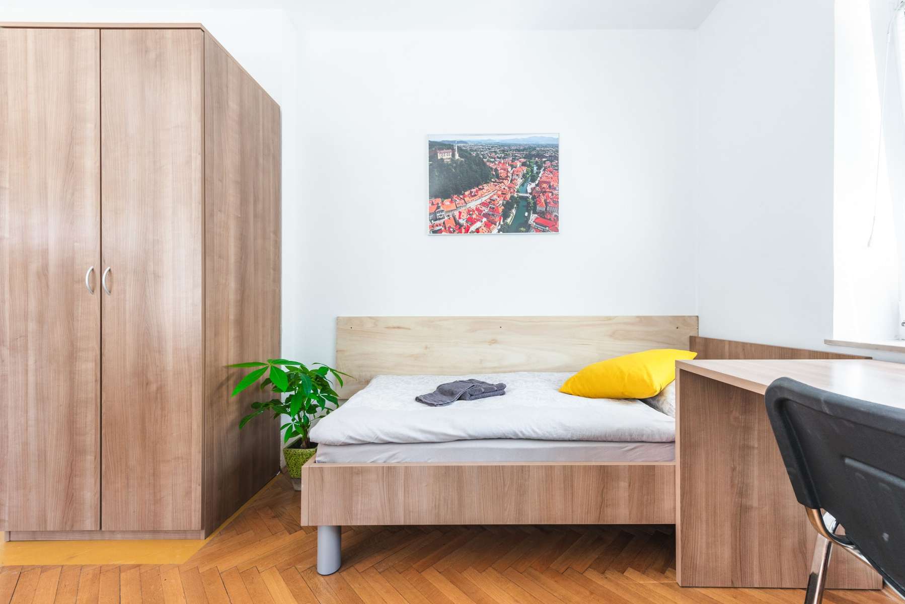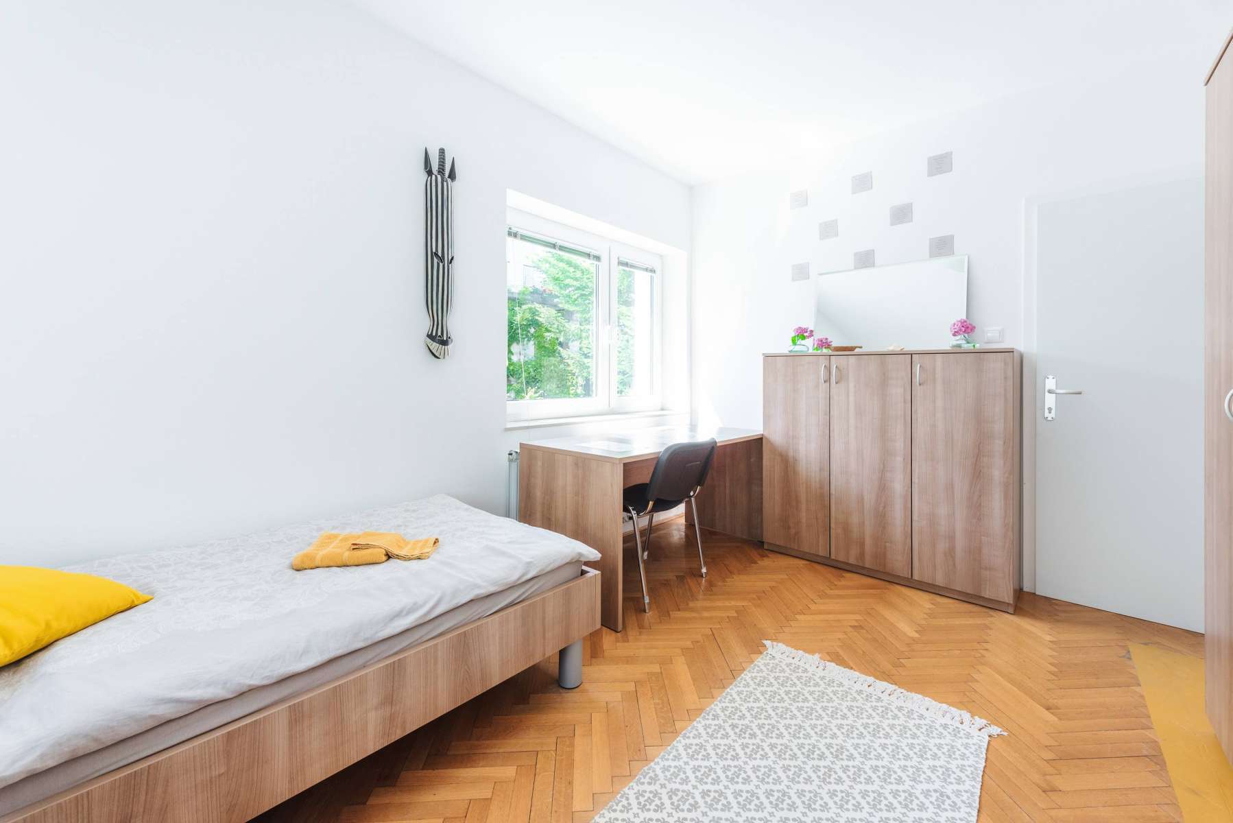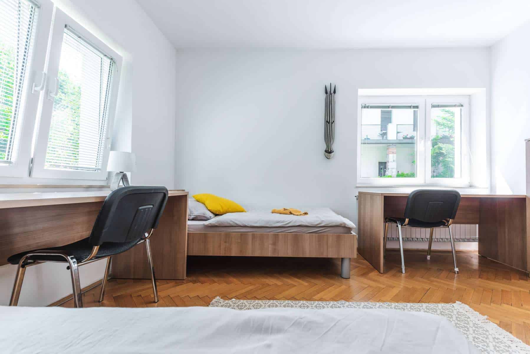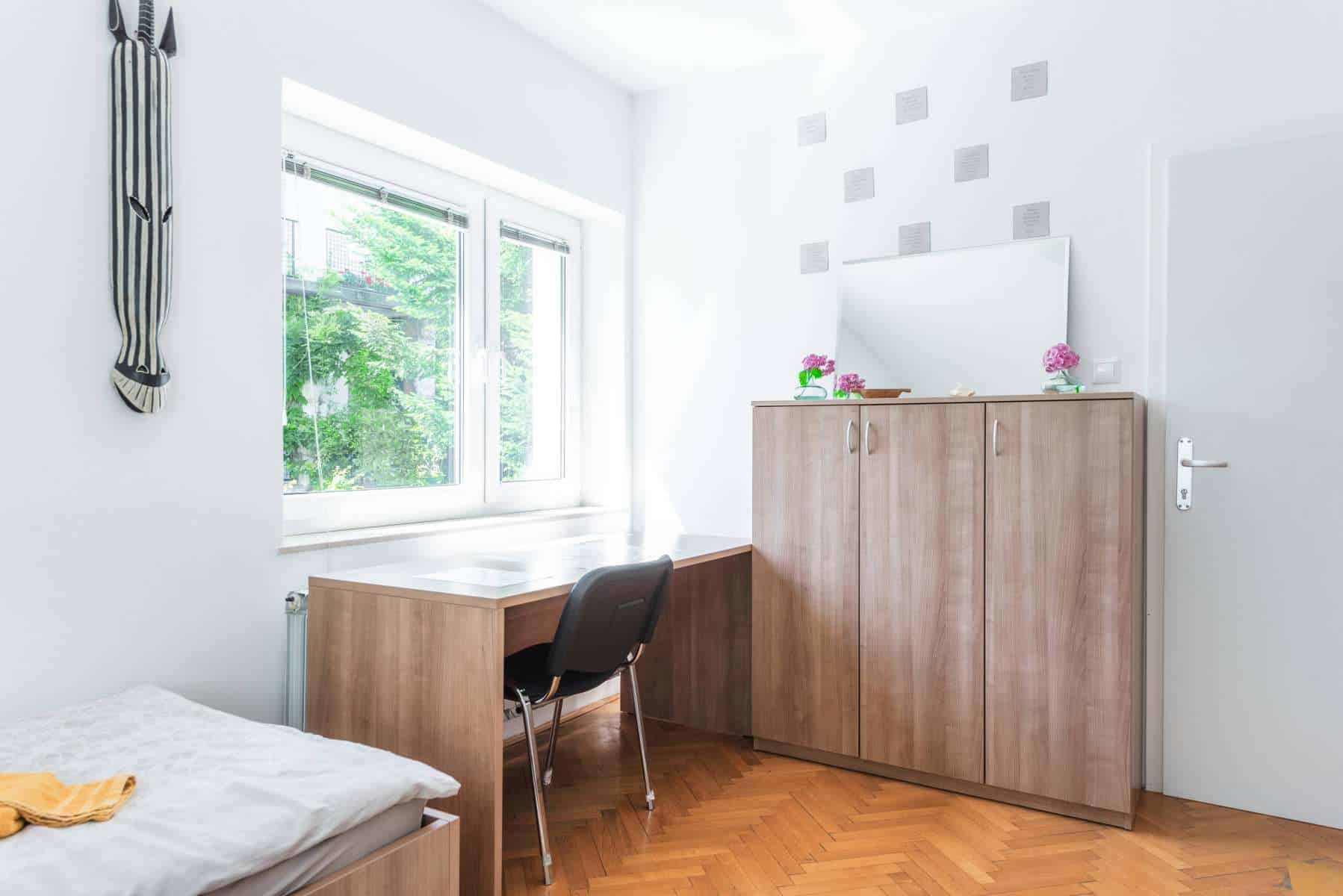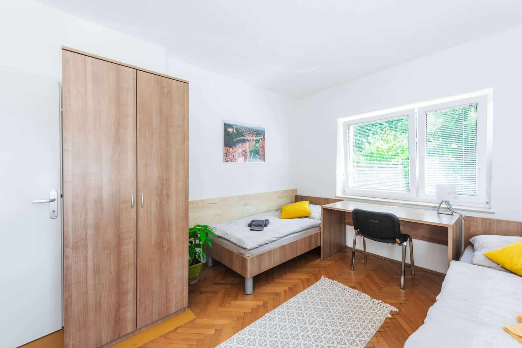 Your room is a part of a 2-bedroom appartment, where 3 other students also live. There is a shared kitchen and 1 toilet and 1 bathroom. If you want, you can rent this room as a single room, in this case the price of the double room (two person price) is 20% lower for a single occupancy.